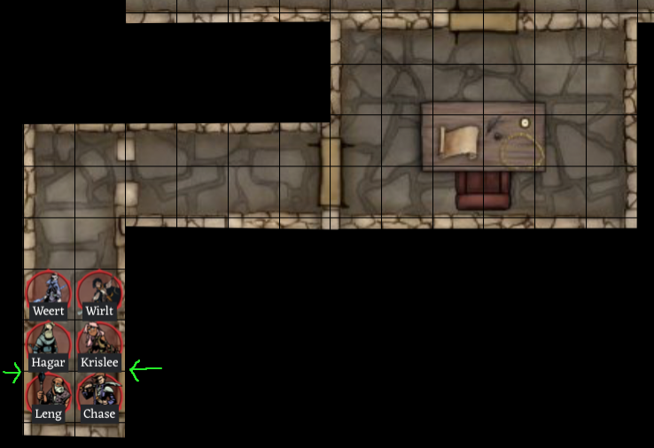 Normally I would have everyone roll to keep up the facade that there might be something in this room. I'm not going to tonight. There's nothing secret or hidden to find in this room. Next Step: Where to? Roll .turn